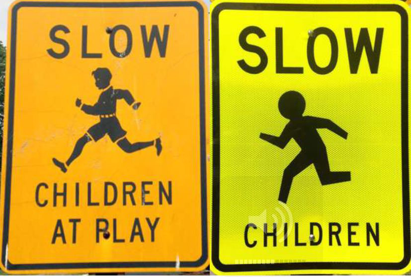 When I first learned to drive I was appalled at the number of dead squirrels I saw on the road. Noting their smeared leavings and mangled bodies every mile, I was convinced I was witnessing the result of a viral pandemic that sent dying squirrels into the streets. Soon, I realized the truth, that squirrels—like children—are not good at judging the speed of oncoming vehicles. I can’t recall ever running over a squirrel, but I’ve seen it happen and it seems clear that, generally, drivers don’t know when they’ve run one over. Let me confess: I have a great fear of running over a child. To my mind, playing children are as mindless as squirrels. And so, contrary to the argument that drivers don’t heed the children-at-play sign, these signs always make me slow down.